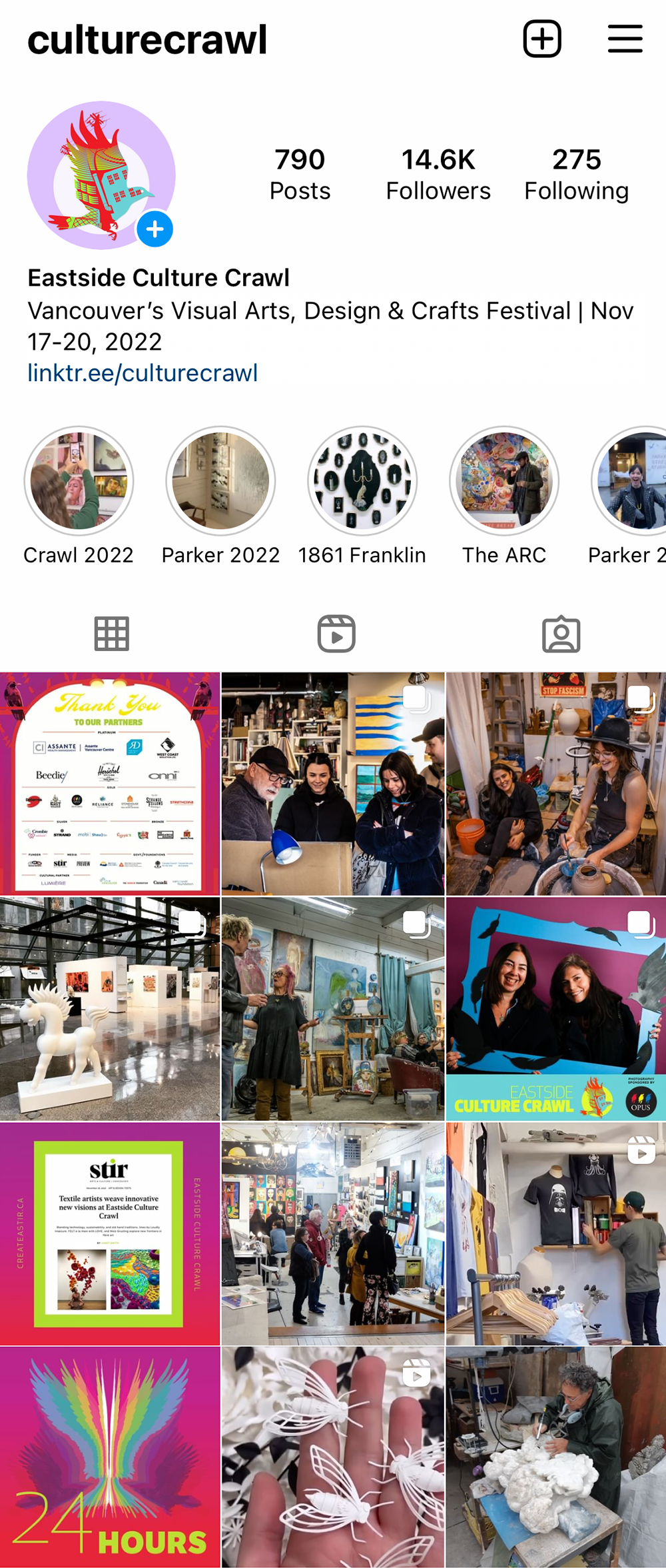 On social media, vertical video, stories & story takeovers, promoted media coverage, contests, and posts evoking the experience of attending the Crawl were crucial parts of our content strategy, ultimately generating some of the campaign’s strongest results. Reels and stories in particular served as a vivid visual showcase of Crawl artists, their studios, and the incredible diversity of their work, and provided opportunities to feature more artists on Crawl feeds than ever before.