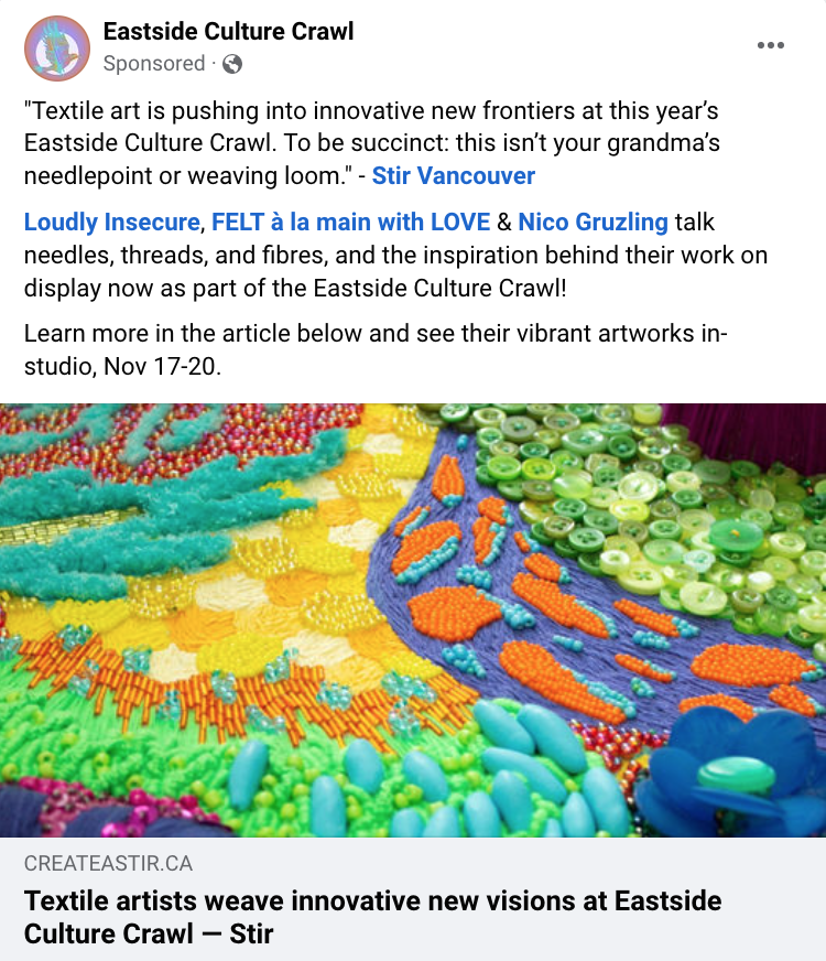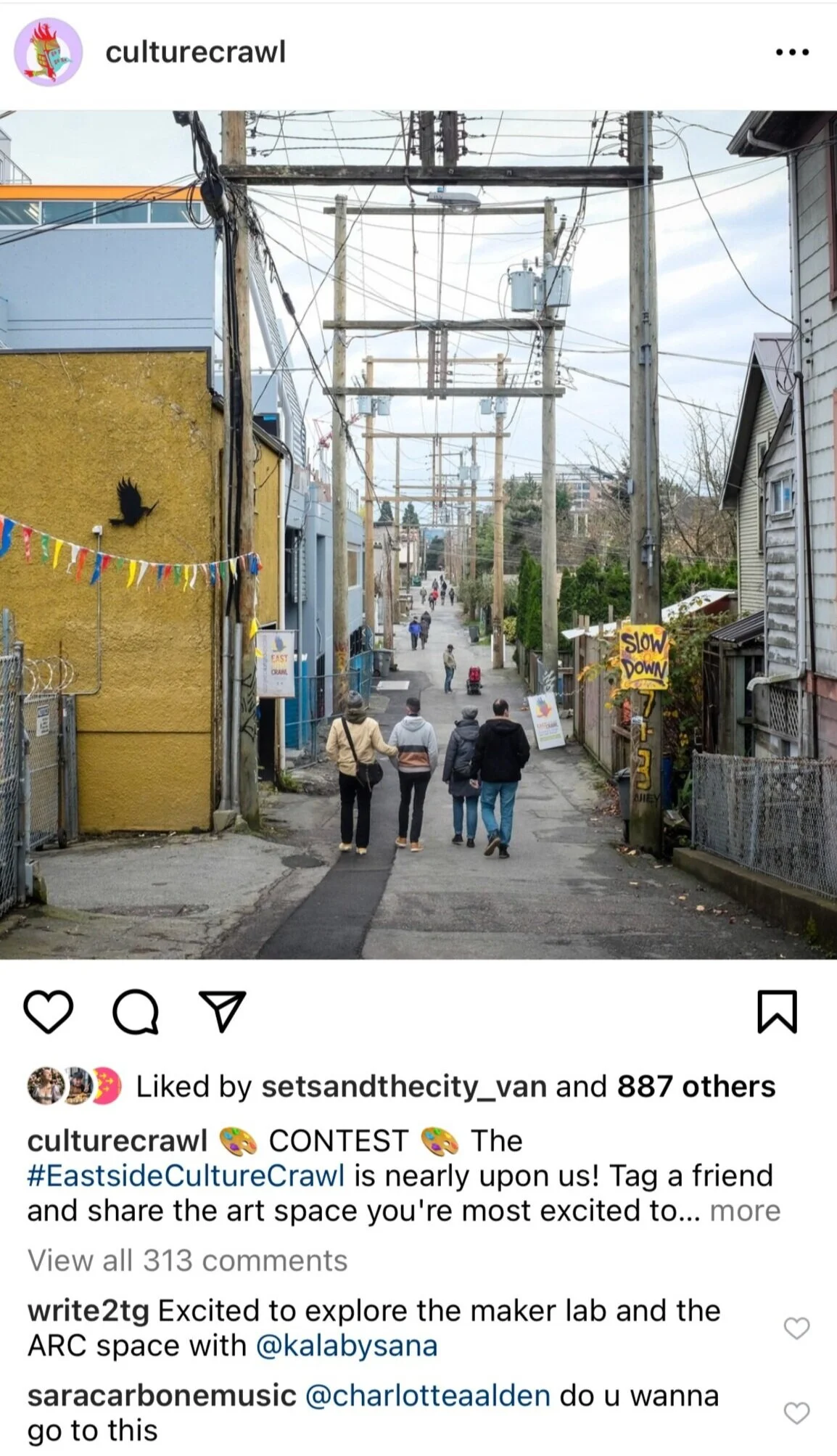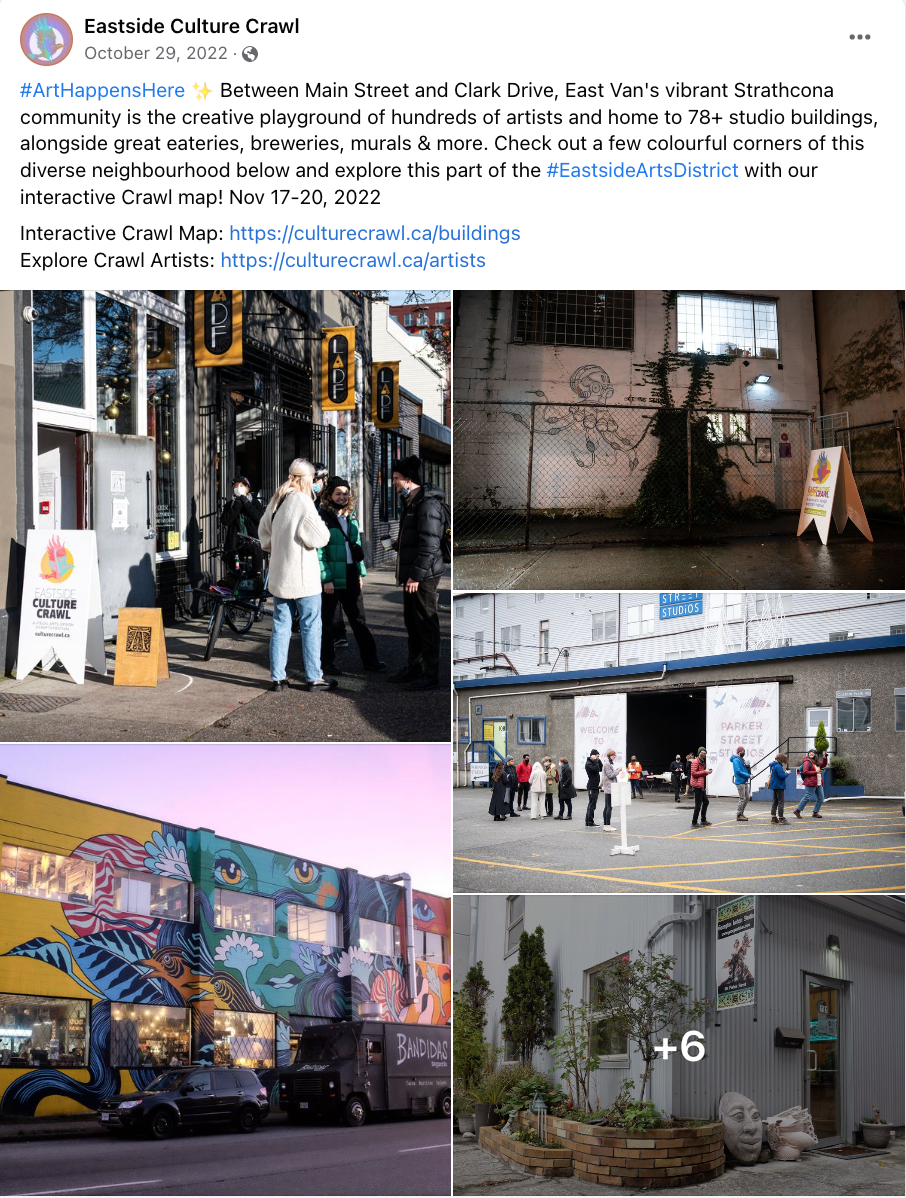 Successfully expanded the Eastside Culture Crawl’s social media following by 10% through organic and paid campaigns.